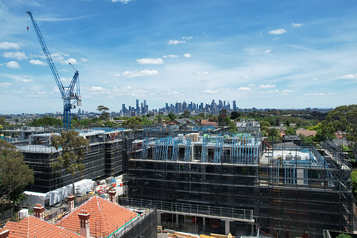 The St. Clare construction team has fully ramped up after the summer shutdown. Apartment fit-outs are underway in all four buildings, with services rough-ins and plastering advancing steadily.
